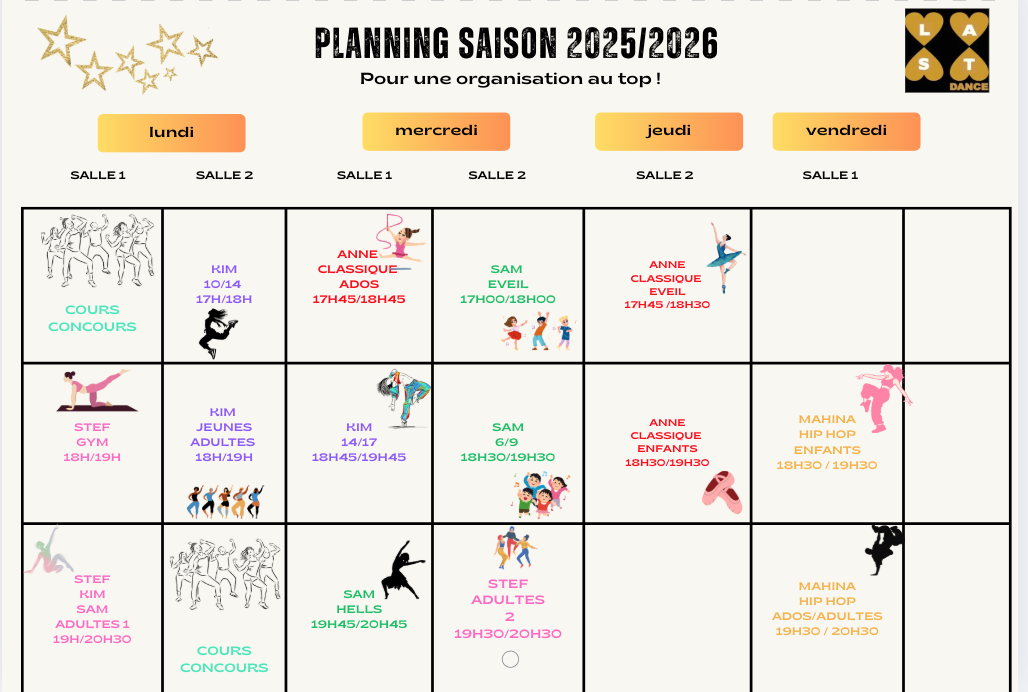 Reprise des cours le 15 septembre 2025 pour une nouvelle année avec Last Dance